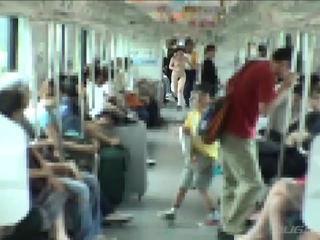 最後に圧巻の、ほぼ満席の電車内を全裸で1車両分以上を疾走!