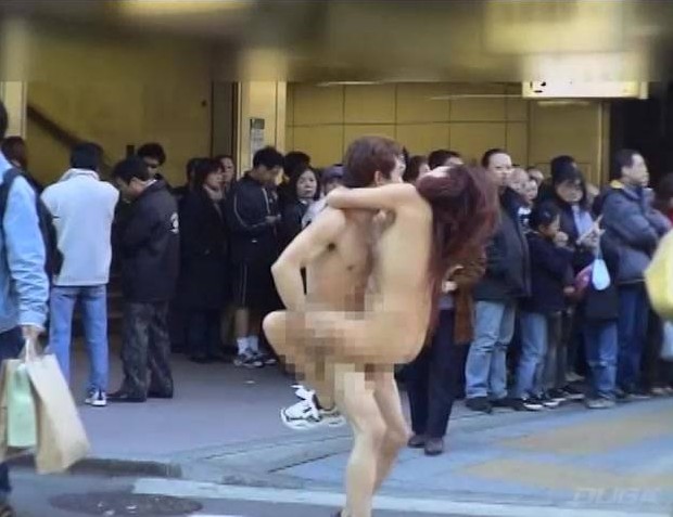 なんと場所は渋谷センター街、全裸になりカメラの前でポーズ!