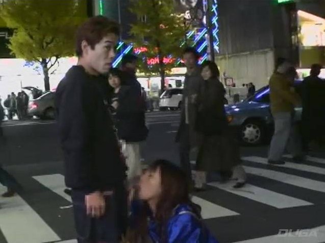 さらに人通りの多い交差点でまさかの路上フェラ敢行!
